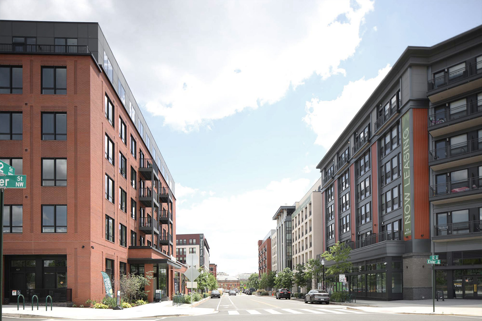 A few ground floor units benefit from high ceilings and a protected patio. The building detailing, while expressed in simple recesses and projections, intends to provide the rich street experience its historic counterparts offer.
