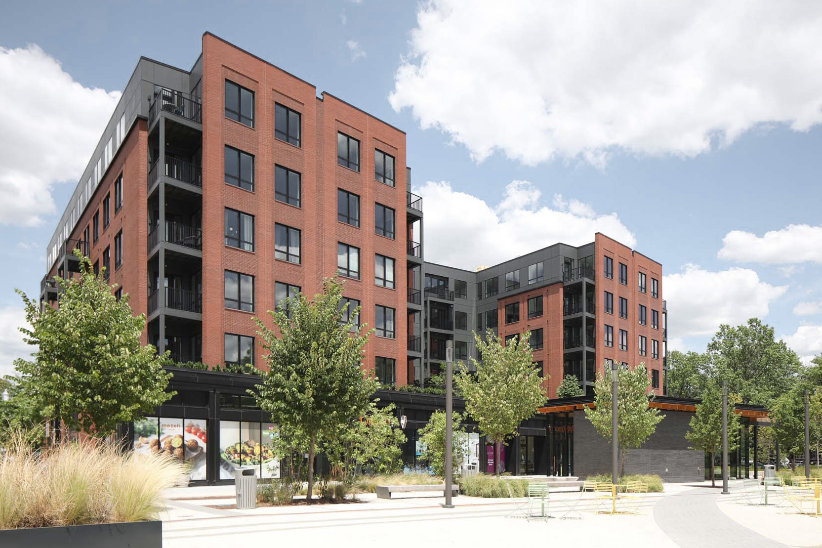 Walter Reed Military Hospital redevelopment. Its retail and amenities activate a new Plaza, where the Pavilionstands.